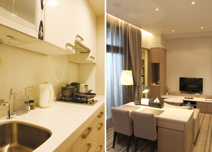 Each room has a 3.6 high ceiling, a king size bed and homey & classically elegant decoration. A kitchen is built for you to make your home delicacy, with which a "Just Like Home" spirit we intend to create. You can also take a look on your independent outdoor corridor where a grandeur view of Miramar Ferris Wheel is right in front of you. Besides, on our roof top and the basement, there are a VIP Lounge Bar, jogging lane and gym facilities, these are good places for you to relax yourself.