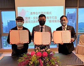 新竹安捷國際酒店與玄奘大學、華圓設計行銷共同擬訂「藝棧藝居」計劃於今(5)日簽約啟航,期望將各界藝術大師及在地新秀的作品,展現給國內外商旅人士及更多台灣旅人,讓旅途因有藝術的陪伴而更加精彩。