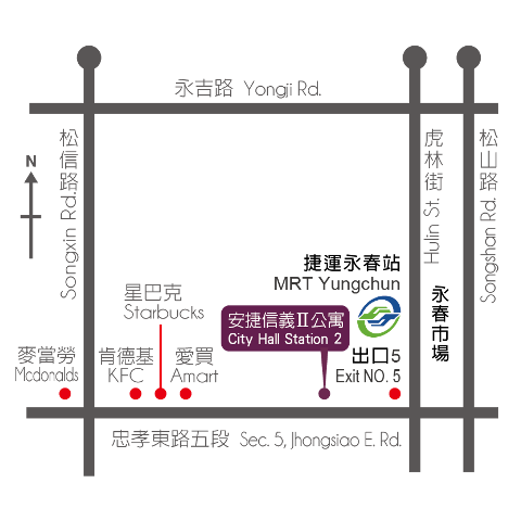 | 板南線永春捷運站5號出口上樓即抵達。 | |
